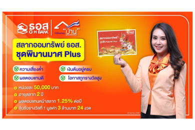 ธอส.เปิดขายสลากออมทรัพย์ ชุดพิมานมาศ Plus ผลตอบแทน 1.25% ต่อปี-ลุ้นรางวัลที่ 1 มูลค่า 3 ล้านบาท 24 งวด