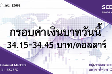 ธ.ไทยพาณิชย์ ประเมินค่าเงินบาทประจำวันนี้ (27 มี.ค 66) กรอบเคลื่อนไหว 34.15-34.45บาท/ดอลลาร์
