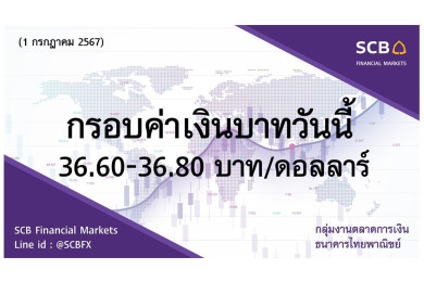 "ธนาคารไทยพาณิชย์" ประเมินค่าเงินบาทวันนี้เคลื่อนไหวในกรอบ 36.50-36.70 บาท/ดอลลาร์