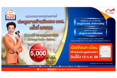 ธอส.จัดงานประมูลบ้านมือสองออนไลน์ คัดทรัพย์เด่นกว่า 900 รายการทั่วประเทศ ลดสูงสุดถึง 40% และ On Top อีก 10% 8 ส.ค.นี้วันเดียว