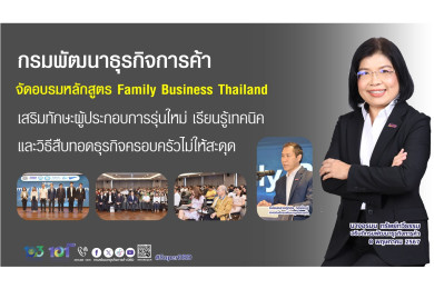 "กรมพัฒนาธุรกิจการค้า" เสริมทักษะให้ผู้ประกอบการรุ่นใหม่ เรียนรู้เทคนิคและวิธีรับช่วงต่อธุรกิจครอบครัวไม่ให้สะดุด