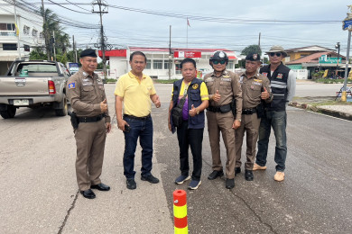 ทต.ธาตุพนม ระดมเจ้าหน้าที่ลงตรวจสอบ ติดตั้งสัญญาณจราจรเพิ่ม ป้องกันอุบัติเหตุสามแยกวัดใจ