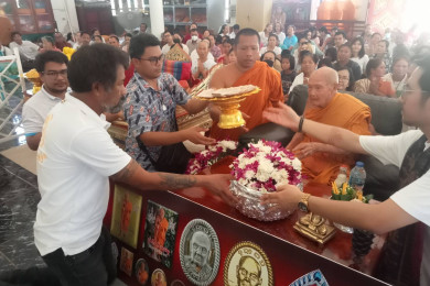 นครพนม ชาวพุทธนับพันแห่สรงน้ำหลวงปู่คีบ อายุย่าง 109 ปี รุมซื้อหวยเลขธูป 349 เกลี้ยงแผง
