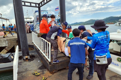 ศูนย์ฯทางทะเลพังงา รุดช่วย นทท.รัสเซีย ประสบอุบัติเหตุจากดำน้ำตื้น หมดสติ บริเวณเกาะ 4