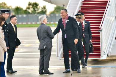 " นายกฯ" สวม "ผ้าลายอย่าง" ลาย "เพ็ชรราชวัตร" เดินทางถึงกรุงปารีส เตรียมเข้าร่วมงาน Thailand – France Business Forum