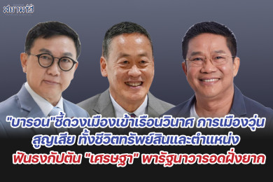 "บารอน"ชี้ดวงเมืองเข้าเรือนวินาศ การเมืองวุ่น สูญเสีย ทั้งชีวิตทรัพย์สินและตำแหน่ง ฟันธงกัปตัน "เศรษฐา" พารัฐนาวารอดฝั่งยาก