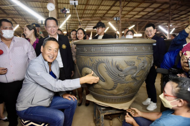 “นายกฯ” ชมการผลิตโอ่ง เมืองราชบุรี พร้อมติดเกล็ดมังกรบนอ่างลายมังกรเป็นที่ระลึกก่อนเซ็นชื่อบนโอ่งเซรามิค