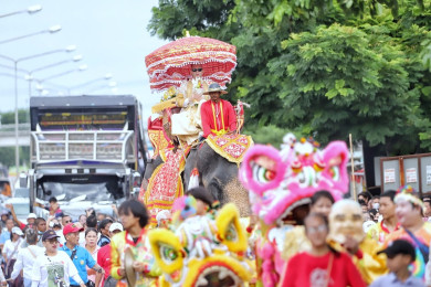 สุดยิ่งใหญ่!! งานบวช "นาคพีช" ลูกชายนายกเบี้ยว ธัญบุรี พาขี่ช้างแห่สุดอลังการ