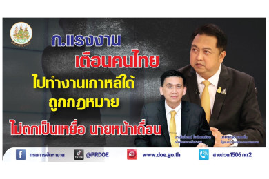 "กรมการจัดหางาน" เตือนอย่าหลงเชื่อนายหน้าเถื่อน หลอกลวงทำงานเกาหลีใต้ แนะตรวจสอบให้ดีก่อนโอนเงิน