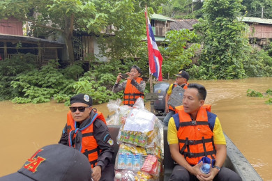 นอภ.แม่สะเรียง ลงพื้นที่มอบถุงยังชีพให้กับราษฎรผู้ประสบเหตุอุทกภัยบ้านท่าตาฝั่ง