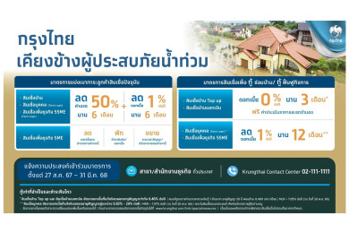ธปท.ผ่อนปรนหลักเกณฑ์ให้สถาบันการเงิน ช่วยเหลือลูกหนี้ที่ได้รับผลกระทบจากน้ำท่วม จ่ายขั้นต่ำ-กู้เพิ่ม