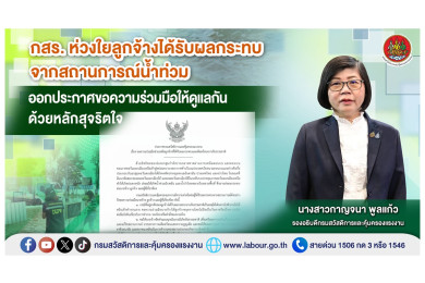 "กสร." ห่วงลูกจ้างได้รับผลกระทบจากสถานการณ์น้ำท่วม ออกประกาศขอความร่วมมือให้ดูแลกันด้วยหลักสุจริตใจ