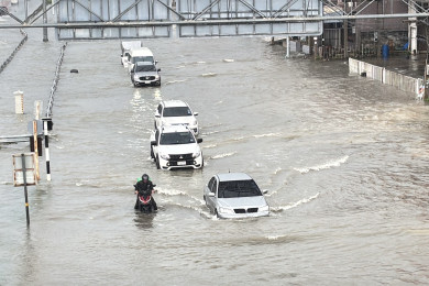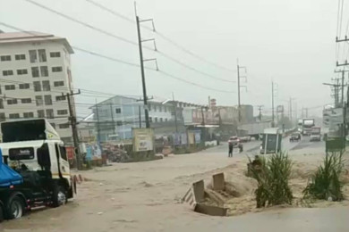 ฝนกระหน่ำพัทยาท่วมซ้ำซาก ต่างชาติเข็นจักรยานฝ่ามวลน้ำ เด็กน้อยกระโดดเล่นน้ำชุ่มฉ่ำ