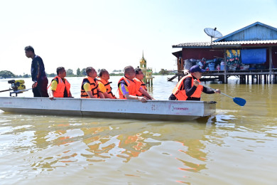 ผกก.สภ.บางระกำ นั่งเรือท้องแบนมอบถุงยังชีพ ผ้าอ้อมผู้ใหญ่สำหรับผู้ป่วยให้vปชช.ประสบภัยน้ำท่วม