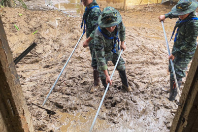กองพันทหารราบที่ 4 กรมทหารราบที่ 17 ทำความสะอาดฟื้นฟูบ้านเรือนประสบอุทกภัยอำเภอแม่สาย