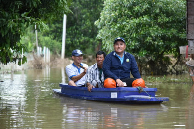อุดรธานี กู้ภัยจิตอาสาเดินลุยฝ่าสายน้ำช่วย 5 ชีวิต ถูกน้ำท่วมบ้านจมมิดเห็นแต่หลังคาติดเกาะมา 9 วัน