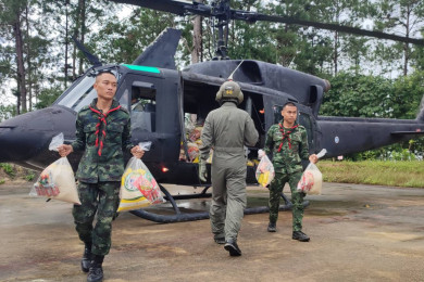 ทบ.ส่งกำลังสนับสนุนทางอากาศ ลำเลียงถุงยังชีพช่วยเหลือผู้ประสบอุทกภัยที่ถูกตัดขาดใน อ.เวียงป่าเป้า จ.เชียงราย