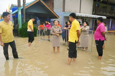 ฝนตกหนักทั้งคืน น้ำไหลเข้าท่วมขังในโรงเรียนวัดห้วงหิน อ.บ้านค่าย จ.ระยอง ผอ. สั่งปิดโรงเรียน 2 วัน
