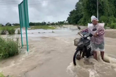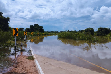 น้ำท่วมถนนเชื้อมสะพานข้ามแม่น้ำชี แห่งที่ 4 ระหว่าง อ.เมืองยโสธร-อ.พนมไพร จ.ร้อยเอ็ด