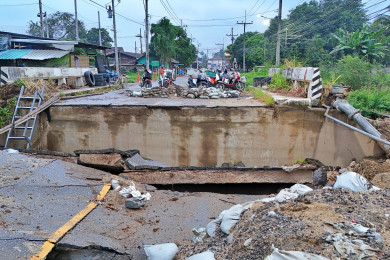 ทน.เชียงราย เร่งเชื่อมถนนคอสะพานขาดน้ำท่วม ก่อนหน้าติดตั้งสะพานชั่วคราวแต่รถบรรทุกหนักฝ่าฝืน ทำชำรุด