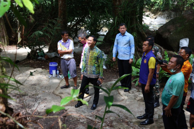 "ผู้ว่าฯพังงา" ตรวจความพร้อมสถานที่สำหรับทำพิธีพลีกรรมตักน้ำ บ่อน้ำศักดิ์สิทธิ์ถ้ำน้ำผุด