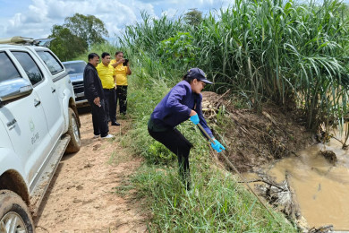 อบต.บ้านแห บูรณาการ อำเภอเมืองอ่างทอง ลงพื้นที่ตรวจสอบสถานประกอบกิจการปล่อยน้ำเสียลงในลำรางสาธารณะ