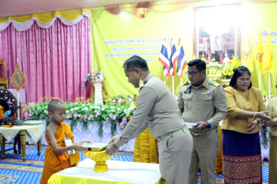 นครปฐม จัดพิธีมอบผ้าไตรและพิธีบรรพชาสามเณร ตามโครงการเสริมสร้างคุณธรรมจริยธรรม ค่านิยมและความเป็นไทย เฉลิมพระเกียรติ กรมสมเด็จพระเทพฯ