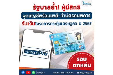 คลังเร่งผู้ถือบัตรคนจน-คนพิการผูกบัญชีพร้อมเพย์ภายใน 16 ธ.ค.นี้ ก่อนชวดเงินหมื่นบาท