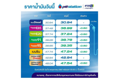 ลดแล้ว! บางจาก ปรับลดเบนซิน-แก๊สโซฮอล์ 30 ส.ต./ลิตร ดีเซลคงเดิม เริ่มตี 5 พรุ่งนี้ (10 ก.ค.67)