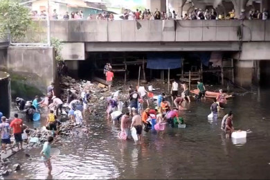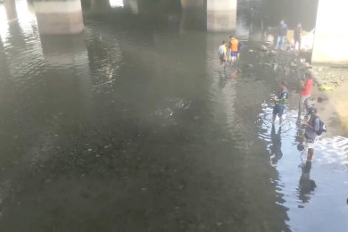 หมอคางดำ มาอีกแล้ว ประชาชนลงจับปลาภายในบึงมักกะสัน