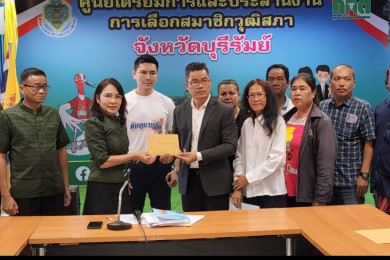 บุรีรัมย์ รับมอบธงตราสัญลักษณ์ กิจกรรม เดิน วิ่ง ปั่น ธงตราสัญลักษณ์ งานเฉลิมพระเกียรติ