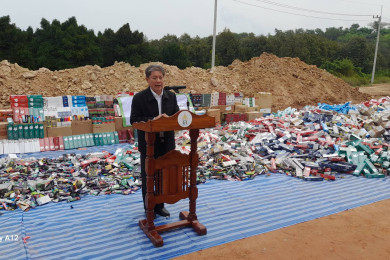 ศุลกากรจันทบุรี ทำลายของกลาง Big lot บุหรี่ไฟฟ้าอุปกรณ์บุหรี่ไฟฟ้า เบียร์ต่างประเทศ ที่คดีสิ้นสุด 67 แฟ้มคดี ปริมาณ 245,058 ชิ้น