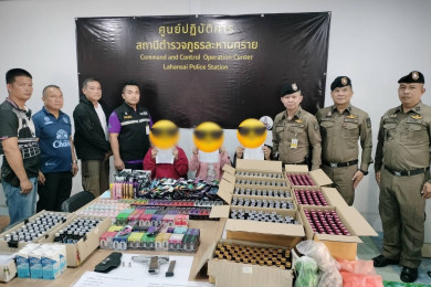 บุรีรัมย์ รองผู้การฯ-ผกก. นำทีม บุกจับ 3 หนุ่มสาวคาบ้าน แอบขายบุหรี่ไฟฟ้าให้ นร.ยึดของกลางกว่า 500 ชิ้น