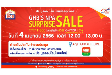 มาแล้ว! ธอส.จัด 10.10 GHB’S NPA Online Auction 10 ต.ค.นี้พบทรัพย์เด่นกว่าพันรายการทั่วประเทศ ลดสูงสุด 40%-On Top อีก 10%