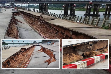 เพจดังแฉ!! ถนนริมแม่น้ำมูล ราคา 77 ล้าน ใช้งาน 6 เดือนพัง