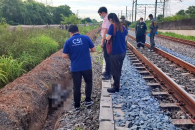 คนงานเดินสายสื่อสารผงะ!! พบศพคนตายเน่าอยู่ข้างทางรถไฟ