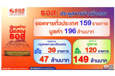 ยังขายดีต่อเนื่อง! ธอส.เผยผลประมูลบ้านมือสองออนไลน์ ขายได้ 159 รายการ มูลค่ารวมกว่า 196 ล้านบาท