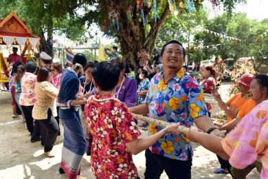 ชาวบ้านวัดตะปอนใหญ่ สืบสานประเพณีชักเย่อเกวียนพระบาท เทศกาลสงกรานต์