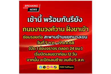 พร้อมกันรึยัง? งานซ่อมรอยต่อ สะพานข้ามแยกบางเขน ถนนงามวงศ์วาน ฝั่งขาเข้า ตั้งแต่วันที่ 5 ก.ค. - 5 ส.ค.68