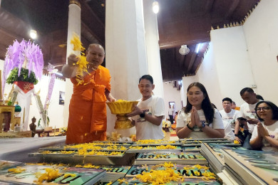ขนส่งน่าน นำแผ่นป้ายทะเบียนรถเลขสวย 301 หมายเลข ทำพิธีเจริญพระพุทธมนต์หลวง เสริมสิริมงคล