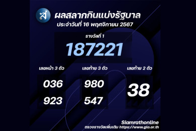 ผลสลากกินแบ่งรัฐบาลงวดประจำวันที่ 16/11/67