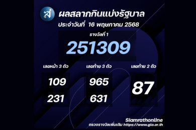ผลสลากกินแบ่งรัฐบาลงวดประจำวันที่ 16/05/68