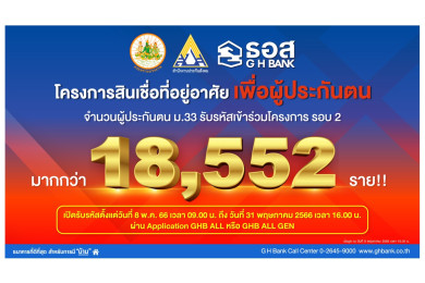 หมดเกลี้ยง! ธอส. ขอขอบคุณผู้ประกันตน มาตรา 33 ตอบรับโครงการสินเชื่อที่อยู่อาศัยเพื่อผู้ประกันตนหลังเต็มกรอบวงเงิน 3 หมื่นล้านบาท