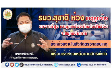"รมว.สุชาติ" สั่งตรวจสอบเหตุลูกจ้างตกจากที่สูงและถูกเครื่องจักรทับเสียชีวิตที่สมุทรปราการ เร่งช่วยเหลือตามสิทธิพึงได้