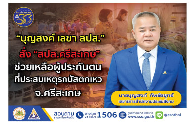 “บุญสงค์” สั่ง “สปส.ศรีสะเกษ” เร่งช่วยเหลือผู้ประกันตนที่ประสบเหตุรถบัสตกเหวที่ศรีสะเกษ
