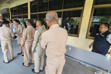 พังงานายอำเภอตะกั่วป่า เซอร์ไพรส์วันประชุมกำนัน ผู้ใหญ่บ้าน ตั้งโต๊ะตรวจฉี่โดยไม่แจ้งล่วงหน้า