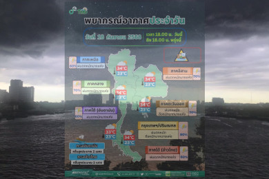 ฝนมาแล้ว! กรมอุตุฯ เตือนฝนถล่มหนักมาก 7 จังหวัด ตะวันออก อีสานใต้ กรุงเทพฯ ปริมณฑล เสี่ยงน้ำท่วมฉับพลัน