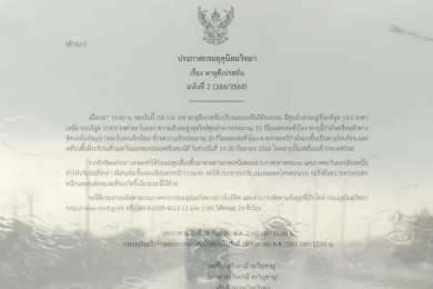 อุตุฯ เตือนฉบับ 2 พายุดีเปรสชัน ทวีกำลังแรงขึ้น ฝนตกหนักหลายพื้นที่ 18-20 ก.ย. 68