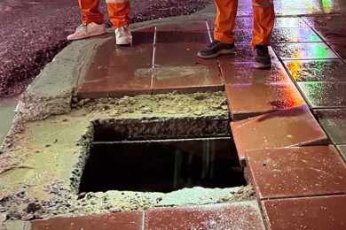 MEA แก้ไขฝาบ่อพักท่อร้อยสายไฟฟ้าใต้ดินด้วยคอนกรีตชั่วคราวบริเวณ ซ.ลาดพร้าว 49 เรียบร้อย