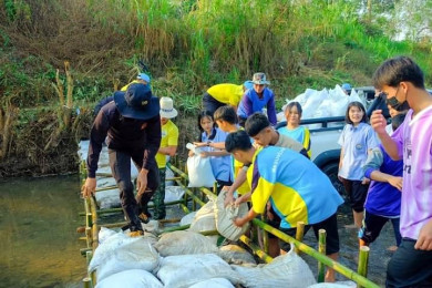 อ.ท่าสองยาง สร้างฝายชะลอน้ำ กักเก็บน้ำไว้ใช้ประโยชน์ในห้วงฤดูแล้ง